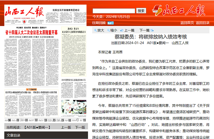 5?20丨《太原日報(bào)》頭版頭條報(bào)道佳華:AI加持 激發(fā)綠色新動(dòng)能