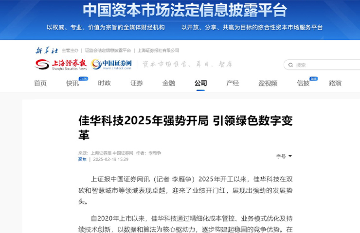 上海證券報(bào) | 佳華科技2025年強(qiáng)勢開局 引領(lǐng)綠色數(shù)字變革